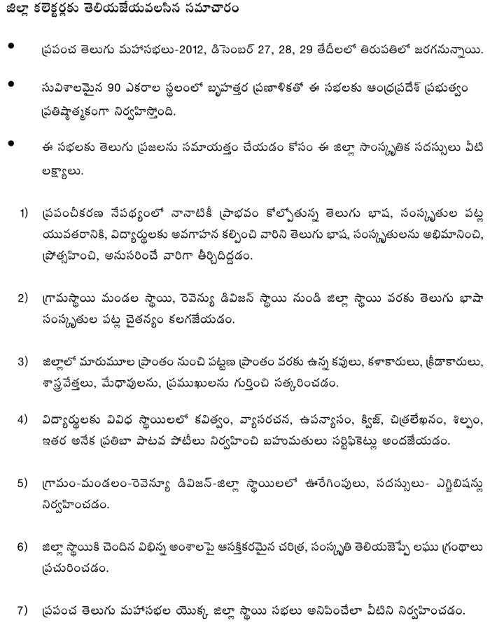 » జిల్లా సాంస్కృతిక సదస్సులు - విధివిధానాలు