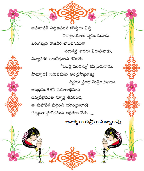 As of now, we are publishing a few articles from 'Telugu Vani' of 1975, written by eminent personalities on the website