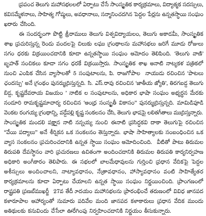 మహాసభల కార్యక్రమాలు ఖరారు