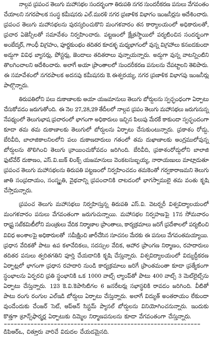 తిరుపతి నగర సుందరీకరణకు పనులు వేగంతంచేయండి: నగరపాలక సంస్ధ కమీషనరు