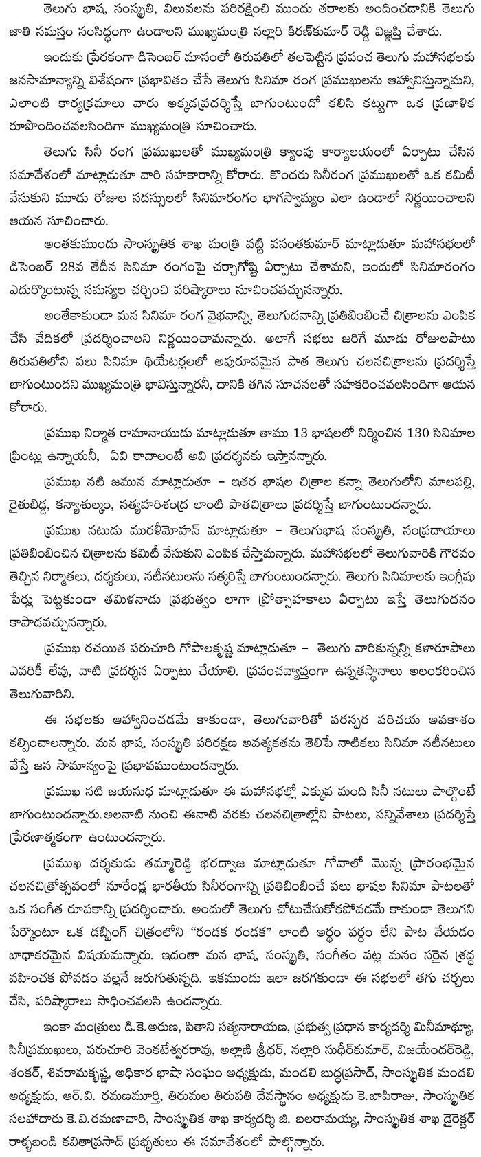 ప్రపంచ తెలుగు మహాసభలలో పాల్గొనవలసిందిగా సినీ ప్రముఖులకు ముఖ్యమంత్రి పిలుపు